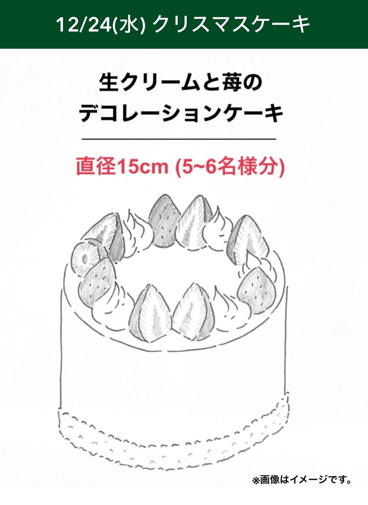 【12/24(水)受取】生クリームと苺のデコレーションケーキ15cm(5~6名分)
